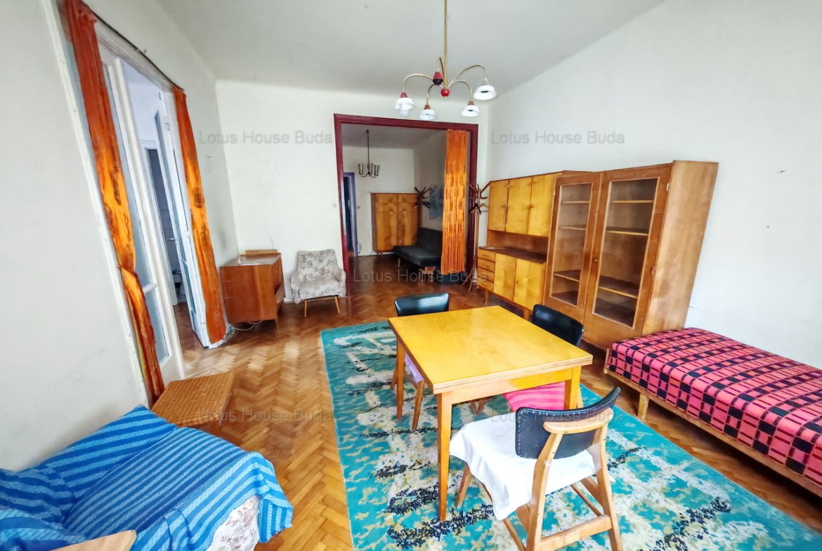 Az eladásra kínált ingatlan az épület harmadik emeletén található és a lépcsőházból nyílik. A lakásban kisebb felújításokon, karbantartásokon kívül nem nagyon történt változtatás, a lakás megőrizte korábbi báját. Ennek is köszönhetően többféle átalakítási lehetőséget is kínál, csak az új tulajdonos fantáziája szabhat határ a lakás lehetőségeinek. A lakásban igazi nagypolgári otthon alakítható ki, hiszen kellemes, jól berendezhető terekkel, tágas helyiségekkel rendelkezik. Jó adottságainak köszönhetően jelenlegi beosztásával vagy átalakítva egy varázslatos élettérre tehet szert az új tulajdonos.