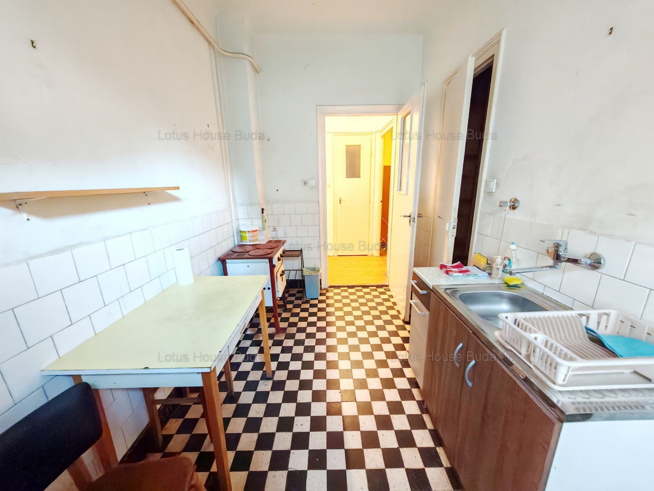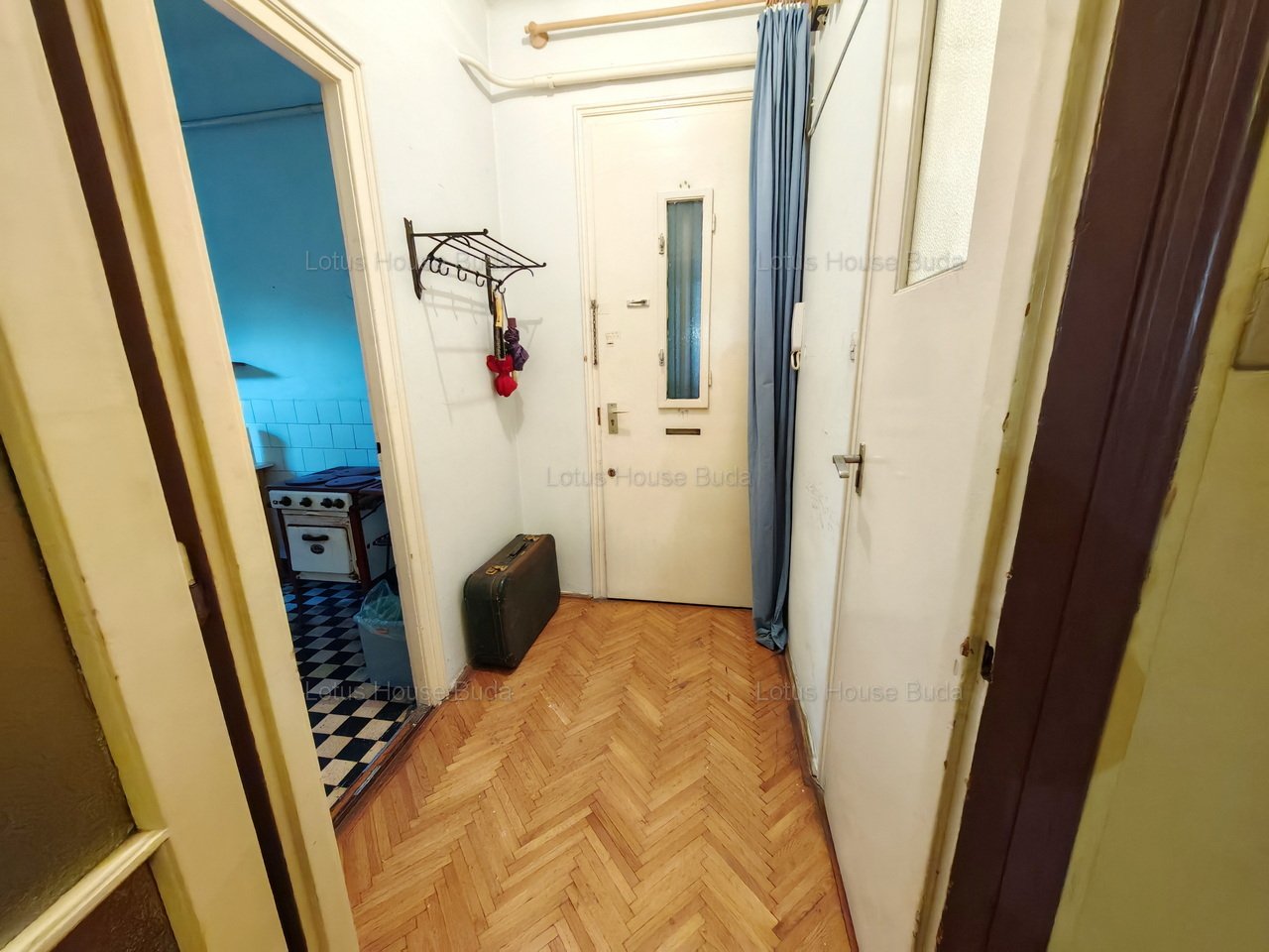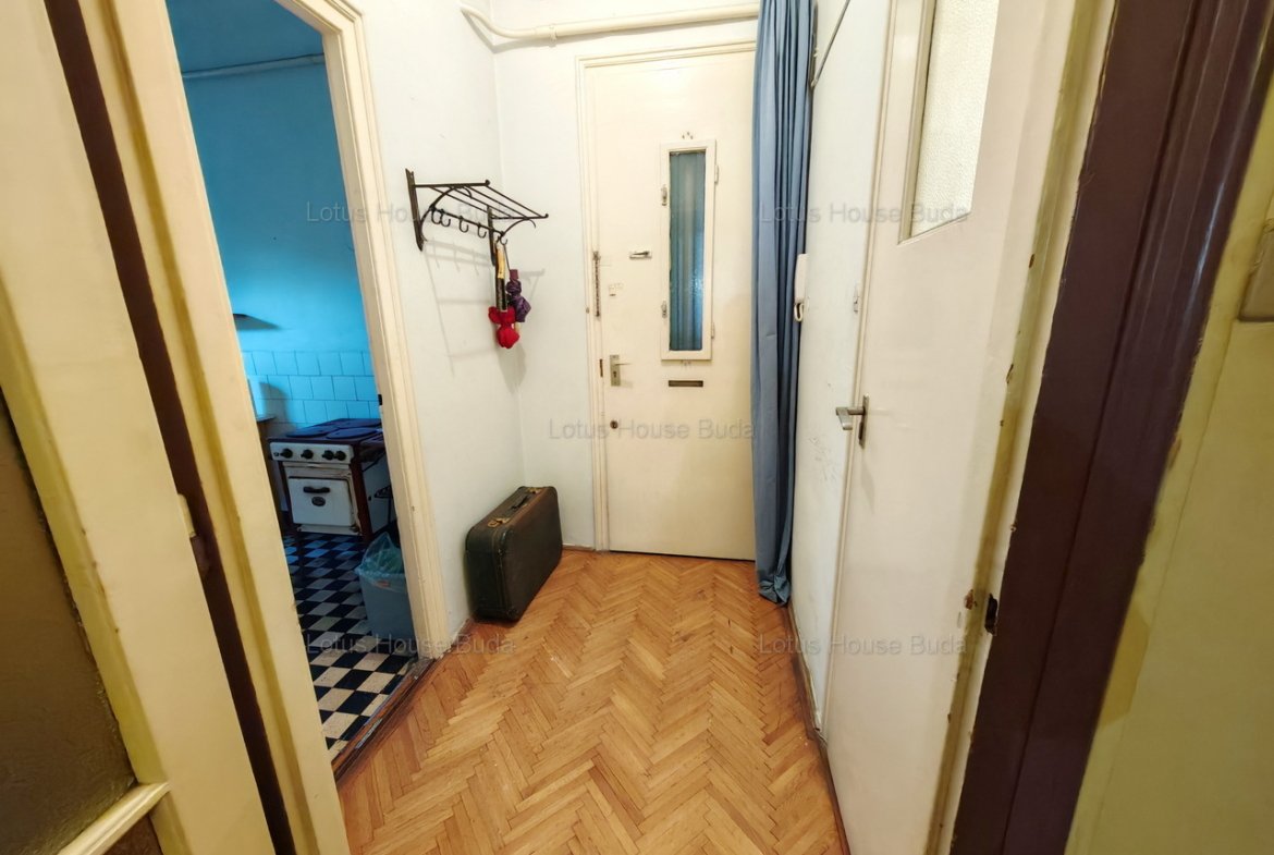 A bejárati ajtón az előszobába lépünk be, amelyből balra nyílik a külön WC, jobbra a konyha, amely mérete étkezésre is alkalmas, egyenesen a hall fogad minket. A hall mérete jó lehetőséget kínál akár arra is, hogy itt kerüljön kialakításra a konyha amerikai konyhás nappalit alkotva a nagyszobával. A másik szoba mind a nagyból, mind a fürdőn keresztül önállóan is megközelíthető. A fürdőben jelenleg kád, mosdó és WC is helyet kapott. A félszoba jelenleg csak a konyhából nyílik. Akár gardróbnak, akár 2. fürdőnek kiváló lehet és akár megnyitható a mögötte lévő szoba felé is.